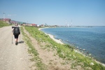 Über das lose Ufergeröll zu laufen war keine Freude, immer wieder rutschten die Füße zur Seite. Endlich ging es über eine Holztreppe zurück auf den richtigen Wanderweg. Da heute Samstag war, begegneten uns laufend Wanderer. Und jedesmal wurden wir gefragt: „Это ваша собака?“ (Ist das Ihr Hund?) Der Schlingel lief immer vor uns außer Sichtweite aber noch so nah, dass jeder der uns entgegenkam denken musste, der Hund gehört zu uns. Unsere Antwort war immer die gleiche: „Нет, это не наша собака.“ (Nein, das ist nicht unser Hund.) Sprachpraxis par excellence.
