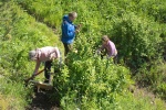 Wir entfernten den Pflanzenbewuchs am Hang links und rechts des Weges. „Damit man nicht an den Beinen nass wird wenn es regnet“ so Xenia.