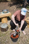 Bei Buchweizenbrei mit Dosenfleisch am Lagerfeuer hörten wir wahre Geschichten von menschenfressenden Bären, Giftschlangen, die sich in Rucksäcken und Zelten verstecken und Streifenhörnchen, die Nüsse in Wanderschuhen bunkern und Schokolade aus dem Rucksack fressen.