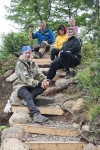 Mittlerweile war es Mittag und tatsächlich hatte es aufgehört zu regnen. Mit dem Treppenbau zu beginnen lohnte nicht mehr, so zogen wir mit Spitzhacke und Schaufel los, um ein Stück Wanderweg zu verbreitern.