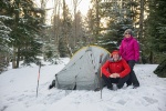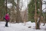Im Wald ging es höher und höher, bald erreichten wir die Schneegrenze. Als unsere Beine fast bis Kniehöhe im Weiß verschwanden, wurde es auch Zeit unsere Schneeschuhe einzusetzen.