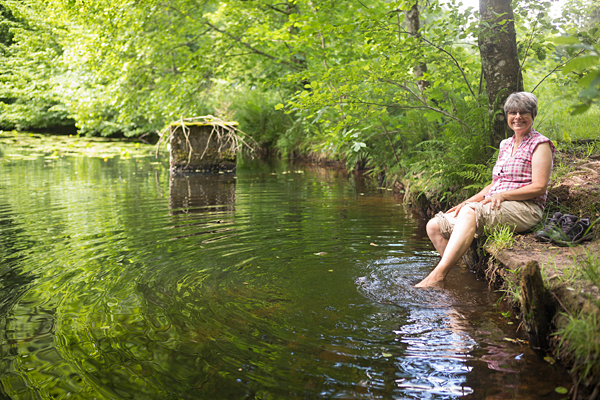 Als wir an einem kleinen Weiher vorbeilaufen, gönnen wir uns wieder eine Rast. Ich ziehe sogleich die Schuhe aus und hänge meine Füße in das kühle Wasser. Auf unseren Wanderungen ist das „Füßebaden“ für mich ein Hochgenuss. Entspannt sitze ich am Ufer, lasse die Füße im Wasser baumeln und meinen Blick über den Weiher gleiten, bis mir etwas Seltsames auffällt. Es gibt keine Fische, ich sehe überhaupt keine Tiere. Die einzige Bewegung ist ein regelmäßig wiederkehrendes Blubbern durch kleine aufsteigende Luftbläschen: seltsam.