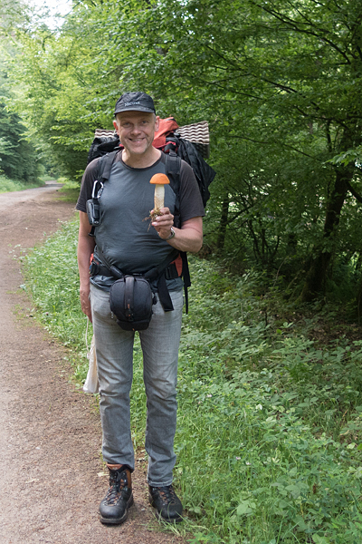 Falk ist nicht ganz zufrieden. Wir haben eine große Rotkappe, Birkenpilze, Hexenröhrlinge, Goldröhrlinge, Pfifferlinge und Rotfußröhrlinge. Es fehlen Steinpilze. Wir diskutieren gerade darüber, als wir auf einen Forstweg stoßen.