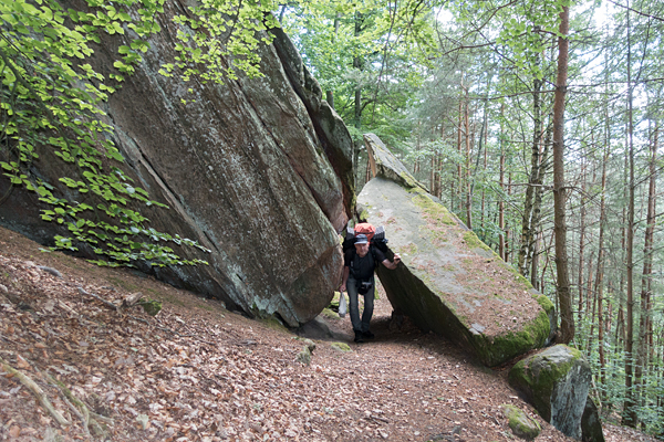 Am nächsten Morgen gehen wir früh los. Es ist unser letzter Tag und wir wollen zeitig am Bahnhof sein. Davor steht noch der Rotalbener Felsenweg auf dem Plan. Ein wilder Saumpfad, der sich um verschieden Felsformationen schlängelt. Die Tafeln und Schilder weisen deutlich darauf hin, dass es ein touristisches Highlight ist. Auch die vielen Sitzgelegenheiten lassen auf eine hohe Besucherfrequenz schließen.