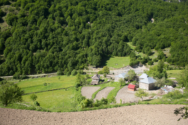 Am Ortseingang sprach mich ein junger Mann an und offerierte mir ein Quartier. „Nicht weit, 20 Euro mit Essen.“ Lek Prrockaj ist der Sohn von Gjin Prrockaj und sein Haus befindet sich nicht weit von der Kirche im Dorfzentrum. Ich entschied mich nach einem Tirana-Bier zwei Nächte zu bleiben und morgen einen Ruhetag einzulegen. Der Weg hatte mich schon etwas geschlaucht aber auch die Gegend lud zum Verweilen ein. Gjins Frau erzählte mir von einem Wasserfall und einer Schlucht in der Nähe des Dorfes. Auch der Wohnturm sei sehenswert.