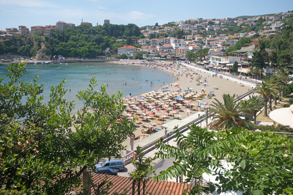 Der Morgenspaziergang führte mich zum Friedhof, auf Friedhöfen lassen sich oft schöne Bilder machen. Gleich oberhalb des Friedhofs erhebt sich die alte Burg von Ulcinj über der Adria. Das Piratennest beherbergt heute Hotels und Restaurants. Nicht nur die alten Gebäude in dem Ort fand ich interessant auch das Marktreiben. Fische, Oliven, Obst und Gemüse alles mögliche wurde angeboten, nur eines konnte ich nirgends entdecken – Rakija!